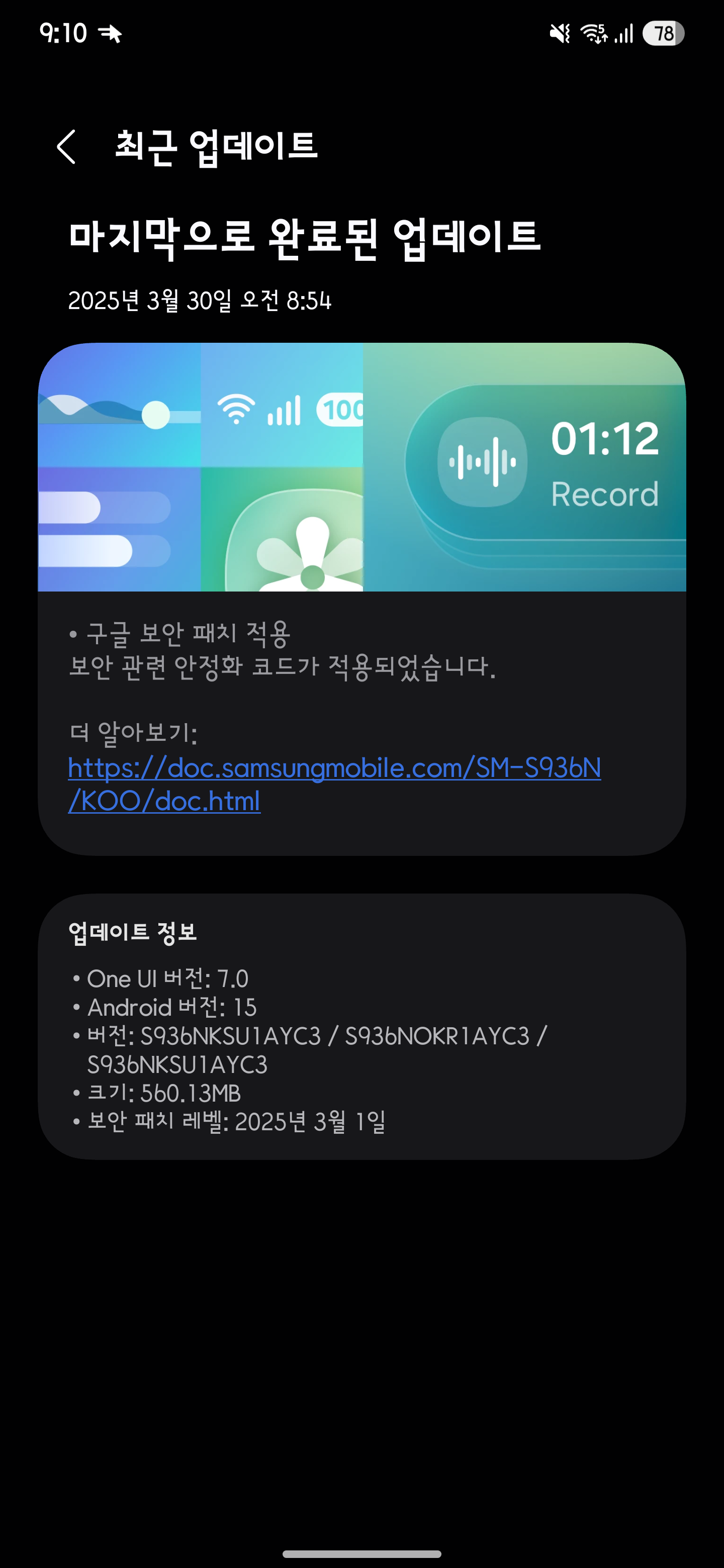 이번 업데이트는 추가 기능이 포함되지는 않았지만, 대신 2025년 3월 보안 패치를 적용하여 버그를 수정하고 보안을 최적화하는데 중점을 두고 있다고 합니다. 업데이트 파일 사이즈가 560.13Mb로 꽤 사이즈가 크네요.