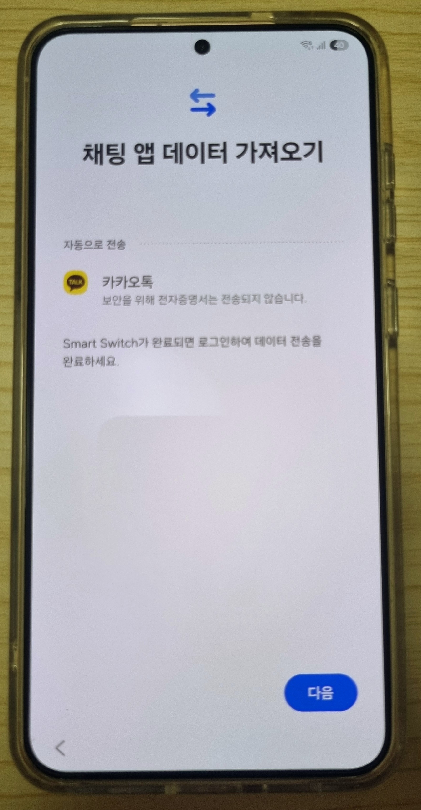 채팅 앱(카카오톡)의 경우에도 이전에는 카카오톡에서 직접 백업 후 카카오톡 로그인 시 다시 복원하는 방식으로 데이터 이전을 진행했었는데 이번에는 카카오톡에서 별도의 백업 진행 없이도 이전 대화 내용을 손쉽게 이동할 수 있어서 너무 편했습니다.
