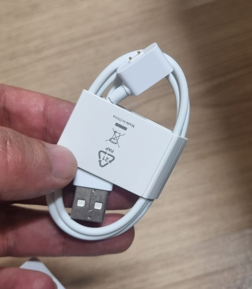 보호 비닐은 본체부터 스트랩 일부까지 포함하여 보호되고 있습니다. 그 외 구성품은 충전 케이블과 사용 설명서가 끝입니다.