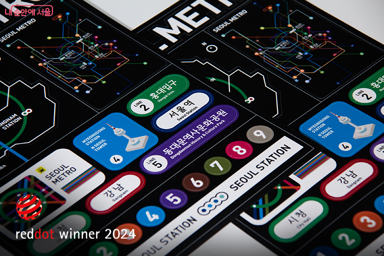 이번에 변경된 디자인의 서울 지하철 노선도는 세계 3대 디자인 어워드인 "레드닷 디자인 어워드(Red Dot Design Award)"의 브랜드ㆍ커뮤니케이션 부문을 수상하였습니다. (2024년)