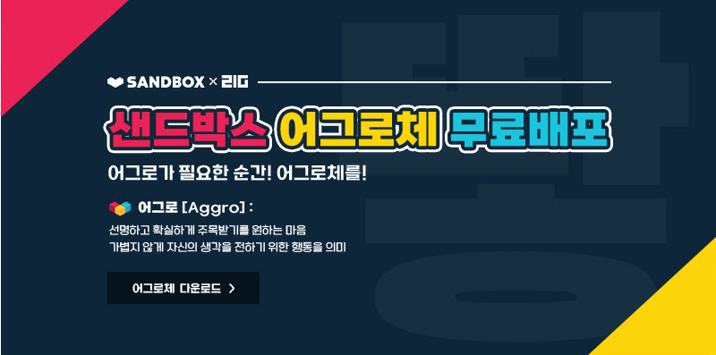 - 샌드박스 어그로체 서체의 지적 재산권은 샌드박스 네트워크에 있습니다.
