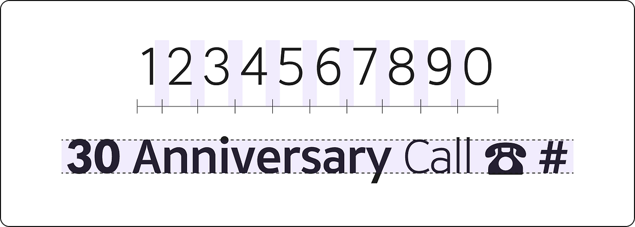 각 숫자 형태에 맞는 글자폿을 설정한 가변폭으로 고른 배열을 가집니다.