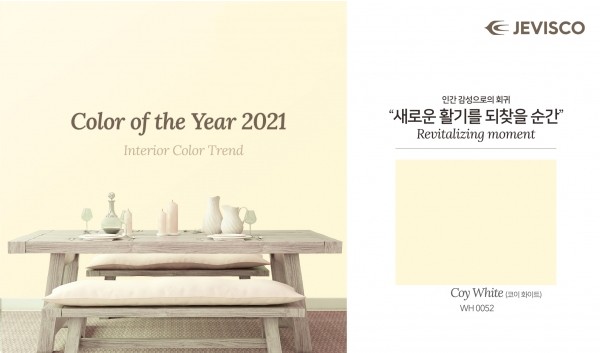2021년 처음 제비스코가 선정한 올해의 컬러는 '코이 화이트(Coy White)' 였습니다.