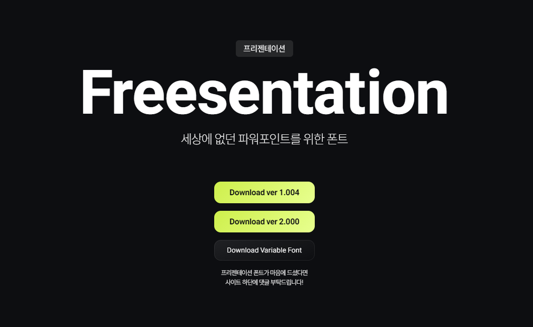 프리젠테이션(Freesentation) 폰트 공식 사이트(폰트 다운로드 가능)
