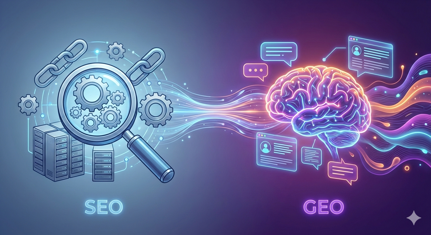 2026년 검색 대전환의 시대! 전통적인 SEO와 AI 기반의 GEO(생성형 검색 최적화)의 결정적 차이를 비교 분석합니다. 구글 SGE, 네이버 큐 등 AI 엔진에 선택받고 상위 노출을 선점하는 핵심 전략과 콘텐츠 설계 방법을 지금 바로 확인하세요.