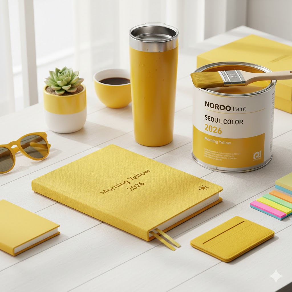 2024년의 '스카이코랄'이 한강의 노을(저녁)을, 2025년 '그린오로라'가 여름밤의 가로수(밤)를 상징했다면, 2026년의 '모닝옐로우'는 다시 떠오르는 태양을 통해 '아침'이라는 시간적 흐름을 완성합니다. 어둠을 걷어내고 하루를 시작하는 맑고 깨끗한 노란빛, 그것이 바로 모닝옐로우의 정체성입니다.