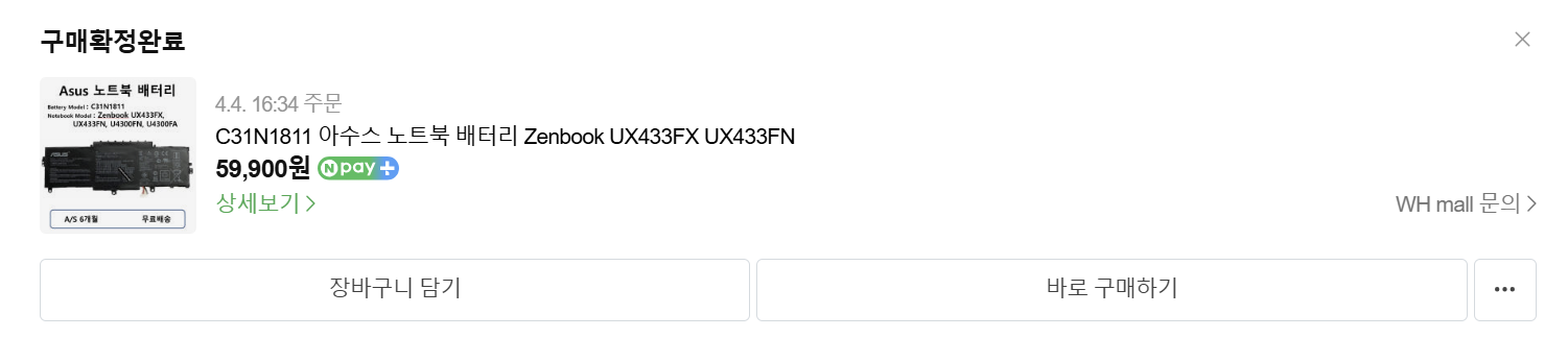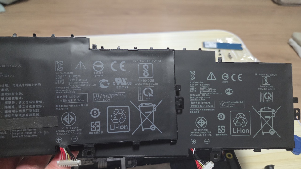 최근 새로 구매한 Samsung Galaxy Book 5 Pro 사용으로 지난 2019년 구매한 ASUS ZENBOOK 14(UX433FN-A6120T)를 사용하지 않고 있었으나, 큰 아이가 사용하기 위해 다시 꺼내 들었으나, 이미 6년 넘게 사용하면서 배터리가 완충을 해도 20분 정도밖에 사용할 수 없는 상태였습니다.