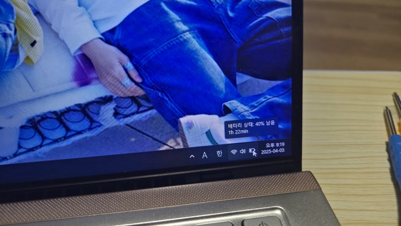 배터리 교체 후 전원을 넣어보니 배터리는 약 40% 정도 충전된 상태로 배송이 되었네요. 배터리는 폭발 위험으로 완충해서 배송되지 않는 것이 당연한 것이니 시간이 1시간 22분으로 표시되네요.