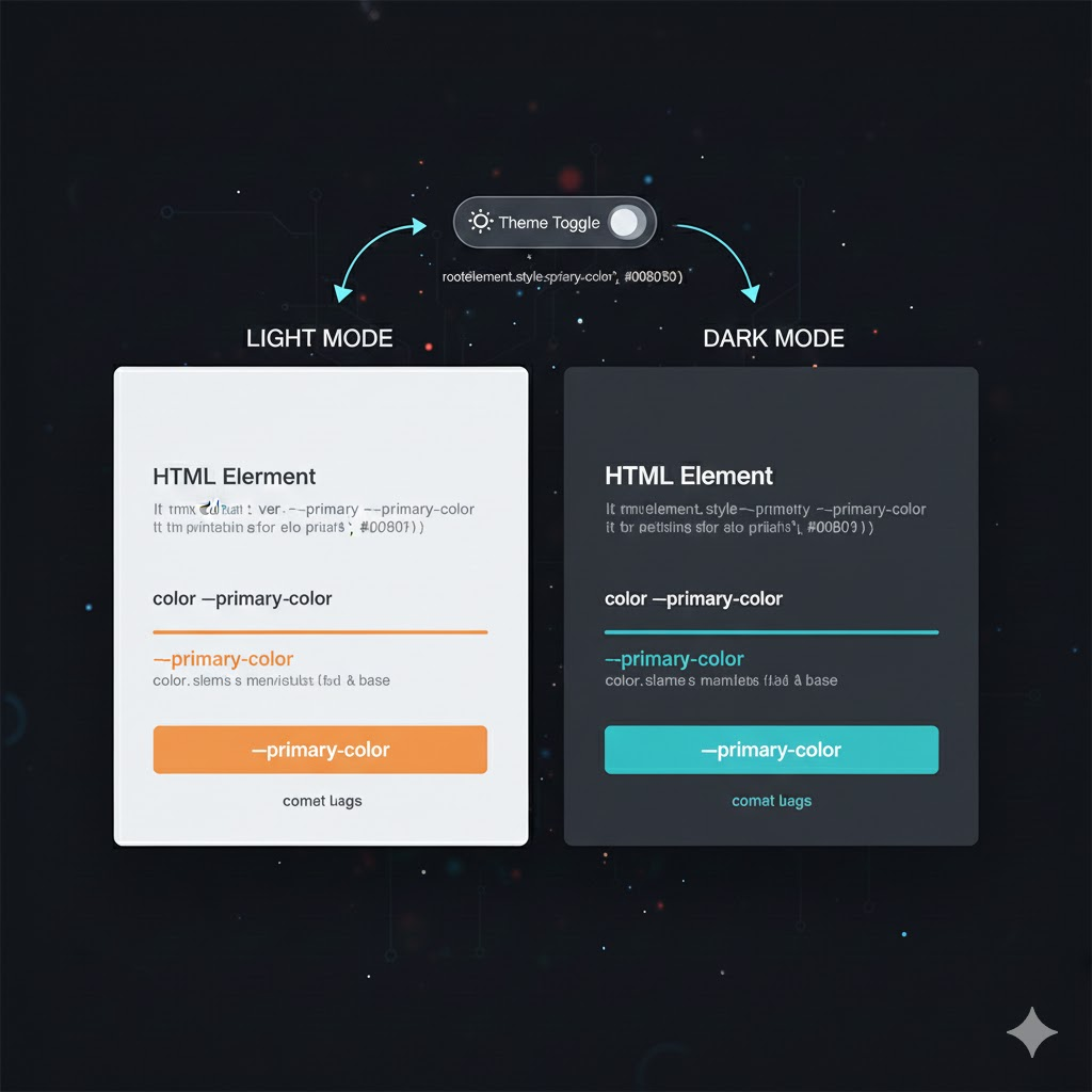 CSS 변수(Custom Properties)는 이런 비효율을 해결해 주는 마법 같은 도구입니다. var(--main-color); 와 같은 형태로 변수를 선언하고 재사용하면, 유지보수가 놀라울 정도로 쉬워집니다. 하지만 진정한 힘은 이 변수들을 JavaScript와 연동할 때 발휘되죠. JS를 이용해 CSS 변수 값을 동적으로 제어하면, 단 몇 줄의 코드로 다크 모드 토글이나 실시간 테마 변경 같은 복잡한 UI를 쉽게 구현할 수 있습니다. 오늘은 이 프론트엔드 필수 스킬을 초보자도 이해할 수 있도록 쉽게 알려드릴게요!