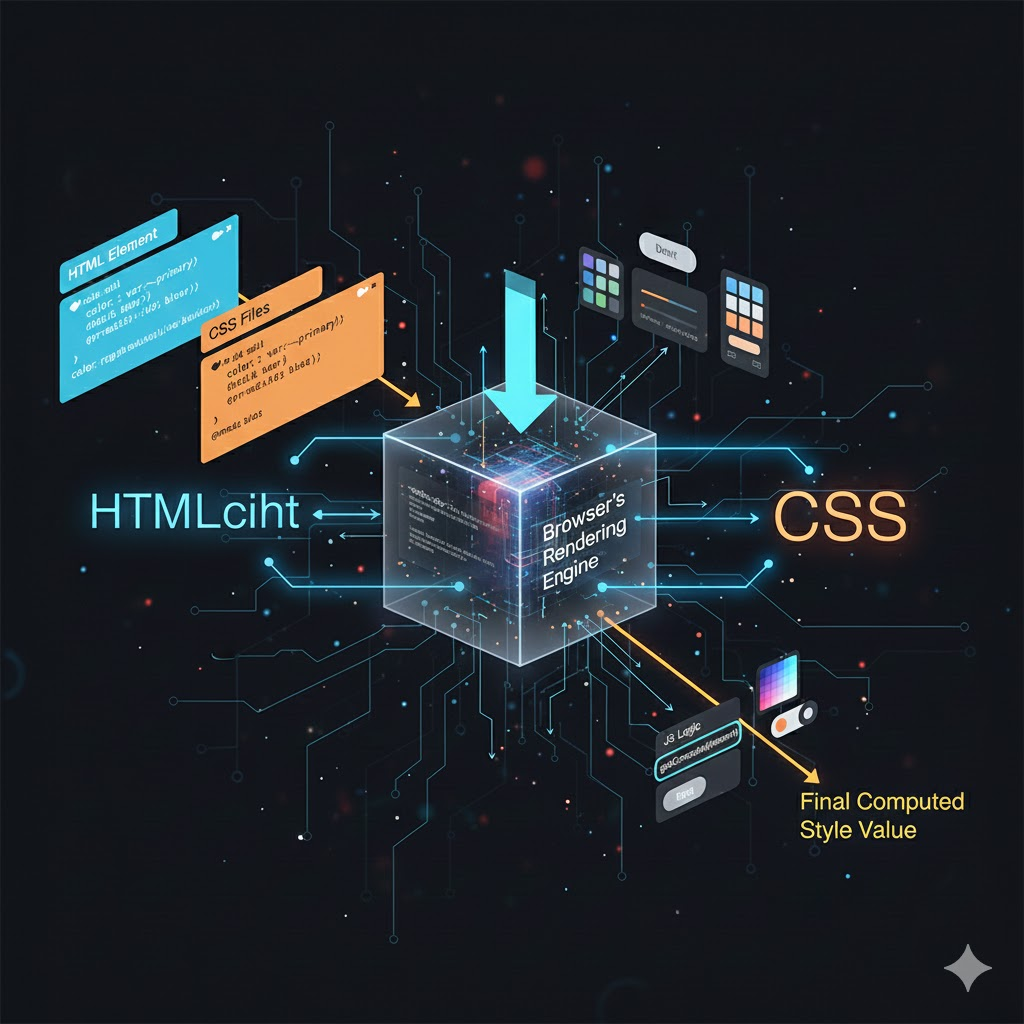 이제 본론입니다. JavaScript에서 CSS 변수 값을 가져오는 것은 DOM 요소의 style 객체를 활용합니다. 가장 핵심적인 메서드는 getPropertyValue()입니다. 이 메서드는 특정 요소의 스타일 정보를 담고 있는 CSSStyleDeclaration 객체에 접근하여 우리가 원하는 CSS 변수(Custom Properties)의 실제 값을 문자열로 반환해 줍니다.
